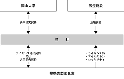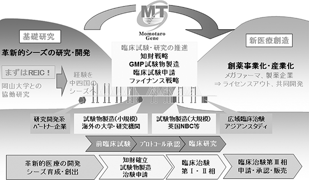 遺伝子治療薬に関しては、臨床研究に際して文部科学省・厚生労働省が定めた「遺伝子治療臨床研究に関する指針」に従い、プロトコルを作成する必要があり、実績を有する岡山大学との連携を深め、臨床研究の推進を後押しします。